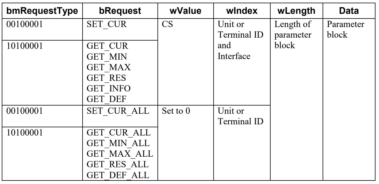wValue: Control Selector (CS) in the high byte and 0 in the low byte.